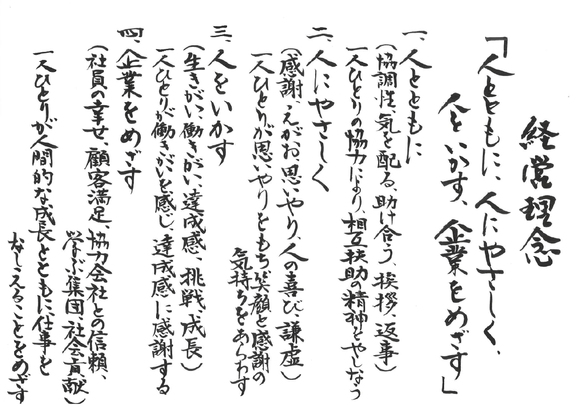 社員一人ひとりの幸福と豊かさを追求することが、会社の成長と地域の発展の鍵だと信じています。